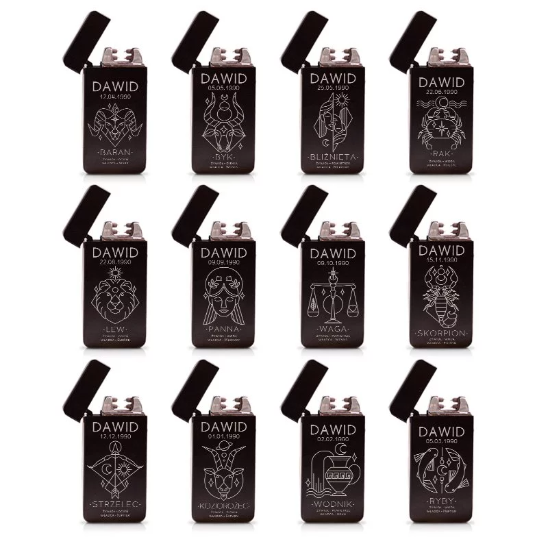 Personalizowana zapalniczka elektryczna z grawerem znaku zodiaku to nowoczesny i funkcjonalny gadżet, idealny na prezent dla bliskiej osoby. Możliwość dodania imienia i daty urodzenia czyni z niej upominek o indywidualnym charakterze. Zapalniczka elektryczna z grawerem znaku zodiaku nie wymaga gazu ani paliwa – ładowana jest przez USB, co sprawia, że jest wygodna i ekologiczna.