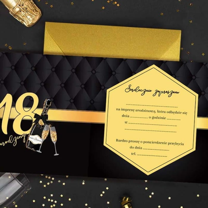 - Trudno wyobrazić sobie imprezę z okazji ukończenia 18 lat bez rozdania gościom zaproszeń, które dobrze wyrażą osobowość jubilatki. Ta propozycja zdecydowanie spodoba się dziewczynie, która lubi błyszczeć i kocha modę oraz wie, co to dobry styl. Fakt, że w jednym zestawie znajduje się aż 10 zaproszeń, pozwala zaprosić wąskie grono przyjaciół, ale każdy kolejny zestaw pomoże stworzyć huczną imprezę z prawdziwego zdarzenia! Koniecznie sprawdź również pomysłowe dekoracje na taką okazję w naszym sklepie!