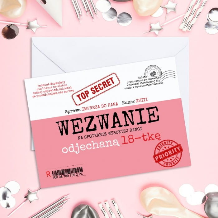 - Szczególną uwagę zwracają krótkie adnotacje, które urzędowym tonem przekazują, czego należy spodziewać się po tym przyjęciu. Pewne jest to, że te zaproszenia zrobią prawdziwą furorę i wielu z Twoich znajomych zechce je sobie zostawić na pamiątkę. Informacja na froncie: „Wezwanie na spotkanie wysokiej rangi” przywoła uśmiech na twarz zaproszonej osoby, ale też sprawi, że poczuje się wyróżniona. Mimo różowych akcentów, zaproszenia na pewno spodobają się także chłopakom.