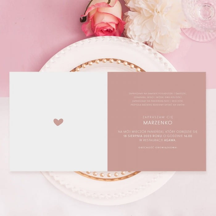 - W jaki sposób powinno się poinformować przyjaciółki o organizowanym w najbliższym czasie Wieczorze Panieńskim? Do tego celu idealnie nadają się nasze personalizowane zaproszenia z kolekcji She Said Yes. Stanowią one połączenie ponadczasowej, klasycznej bieli oraz niezwykle modnego w tym sezonie odcienia rose gold, czyli różowego złota.