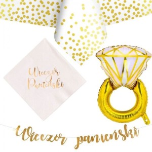 - Gotowy zestaw dekoracji na imprezę, jaką jest wieczór panieński. Zestaw zawiera następujące dekoracje wnętrza:
