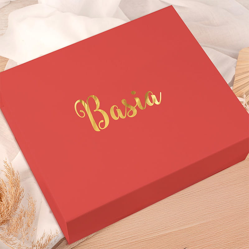 Całość została zapakowana w jasne pudełko ze złotym nadrukiem imienia. Dzięki takiemu wykończeniu prezent od razu nabiera eleganckiego charakteru i nie wymaga dodatkowego pakowania. Złota personalizacja podkreśla wyjątkowość zestawu i sprawia, że obdarowana osoba poczuje się naprawdę wyróżniona. Zestaw prezentowy z kocem dla kobiety to propozycja, która łączy elegancki wygląd z codziennym zastosowaniem. Koc, kubek z imieniem, notes i zawieszka mogą być używane każdego dnia, a jednocześnie pozostają pamiątką ważnych chwil. Z tego powodu taki komplet sprawdzi się w wielu sytuacjach i z pewnością wywoła radość – niezależnie od wieku czy okazji.