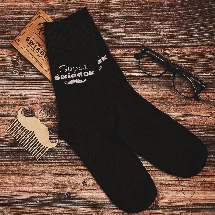 - aktualnie w zestawie wysyłane są czarne skarpety z napisem "super świadek"