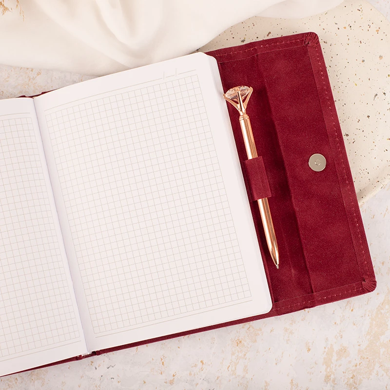 - Personalizowany welurowy notes A5, 96 kartek w kratkę