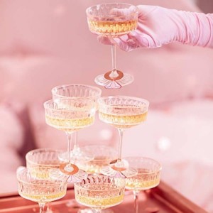 Zestaw zawiera dziesięć znaczników na kieliszki w formie pierścionka z brylantem, który jest symbolem zaręczyn. Każdy znacznik wygląda nieco inaczej, dzięki czemu nie będzie szans na pomylenie kieliszków podczas zabawy. Znaczniki na kieliszki na panieński są utrzymane w różowej tonacji z dodatkiem złota. Taka kolorystyka jest bardzo kobieca. Dzięki takim efektownym akcentom pięknie ozdobisz stół. Znaczniki na kieliszki należą do serii dodatków na panieński OMG!-biorę ślub, którego motywem przewodnim jest właśnie zaręczynowa błyskotka. Wykorzystaj dodatkowe elementy z serii, aby stworzyć zjawiskowy i niepowtarzalny wystrój wieczoru panieńskiego!